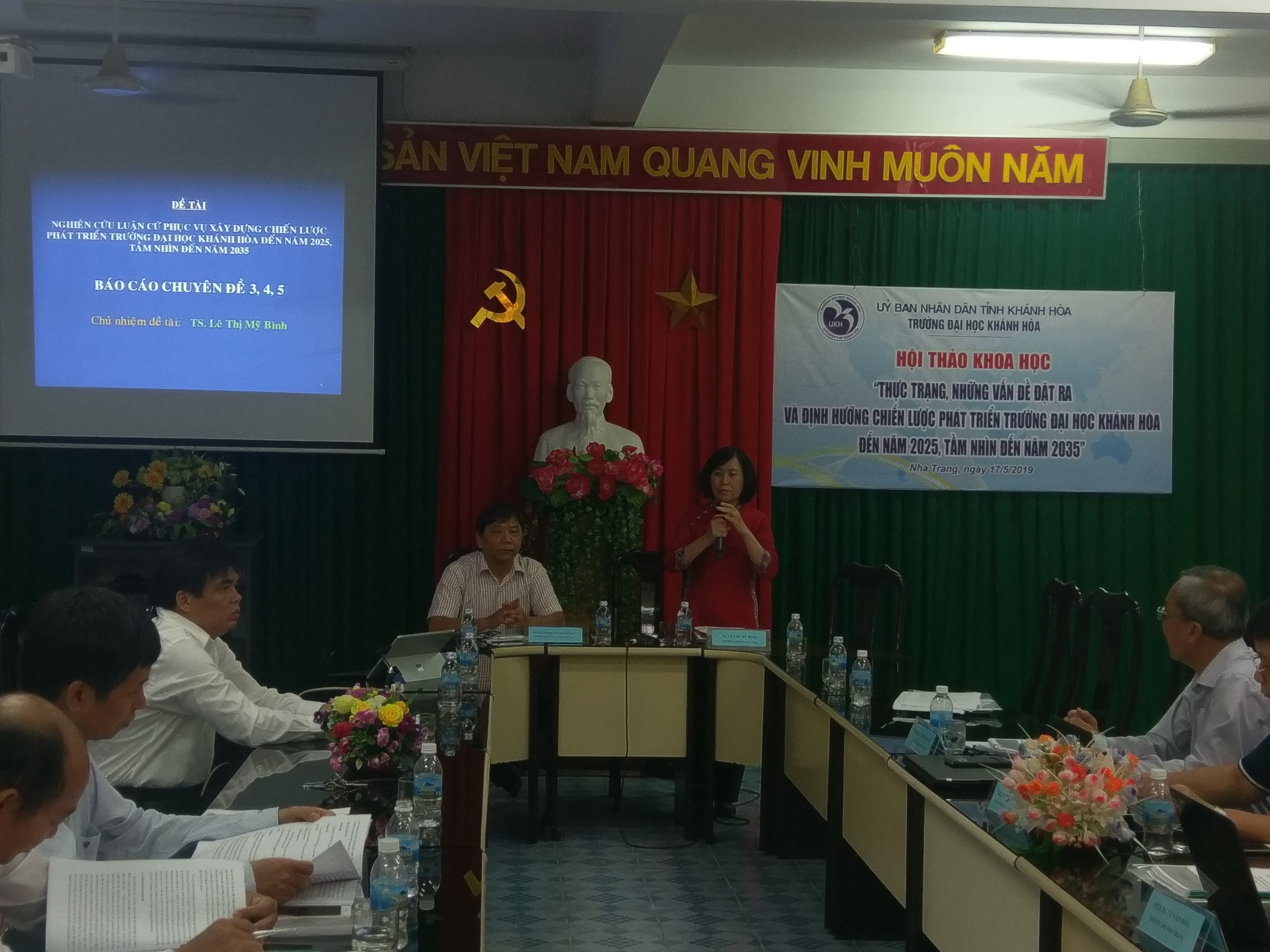 Ngày 17 tháng 5 năm 2019, tại Trường Đại học Khánh Hòa đã diễn ra chương trình Hội thảo Khoa học với chủ đề “Nghiên cứu luận cứ phục vụ xây dựng chiến lược phát triển Trường Đại học Khánh Hòa đến năm 2025, tầm nhìn đến năm 2035”.