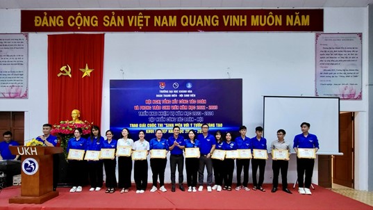 Hình 3: Thầy Nguyễn Đăng Đức trao giấy khen của Hiệu trưởng cho các tập thể và cá nhân có thành tích xuất sắc trong công tác Đoàn và phong trào sinh viên năm học 2022-2023