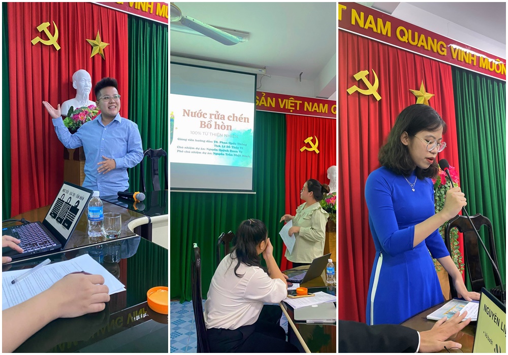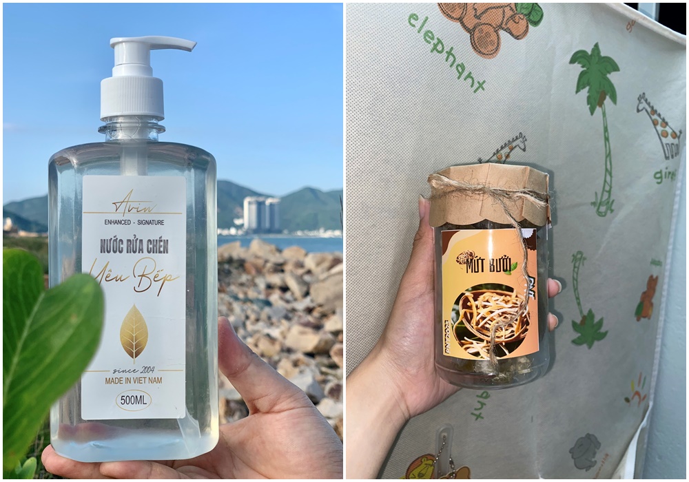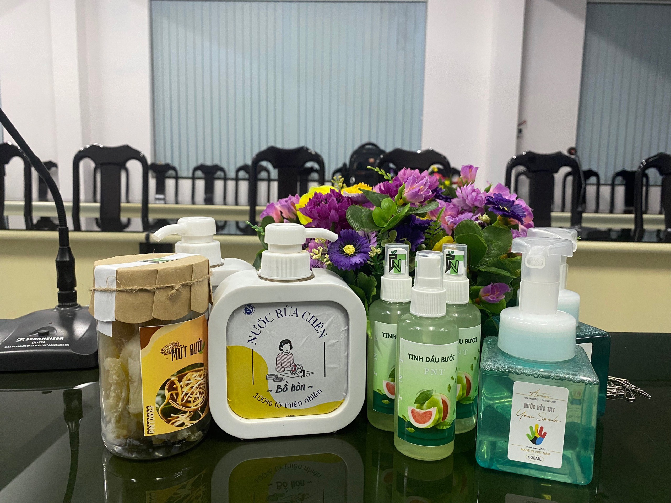 Hình 1. Sản phẩm Nước rửa chén và Mứt bưởi tại Vòng chung kết cuộc thi.