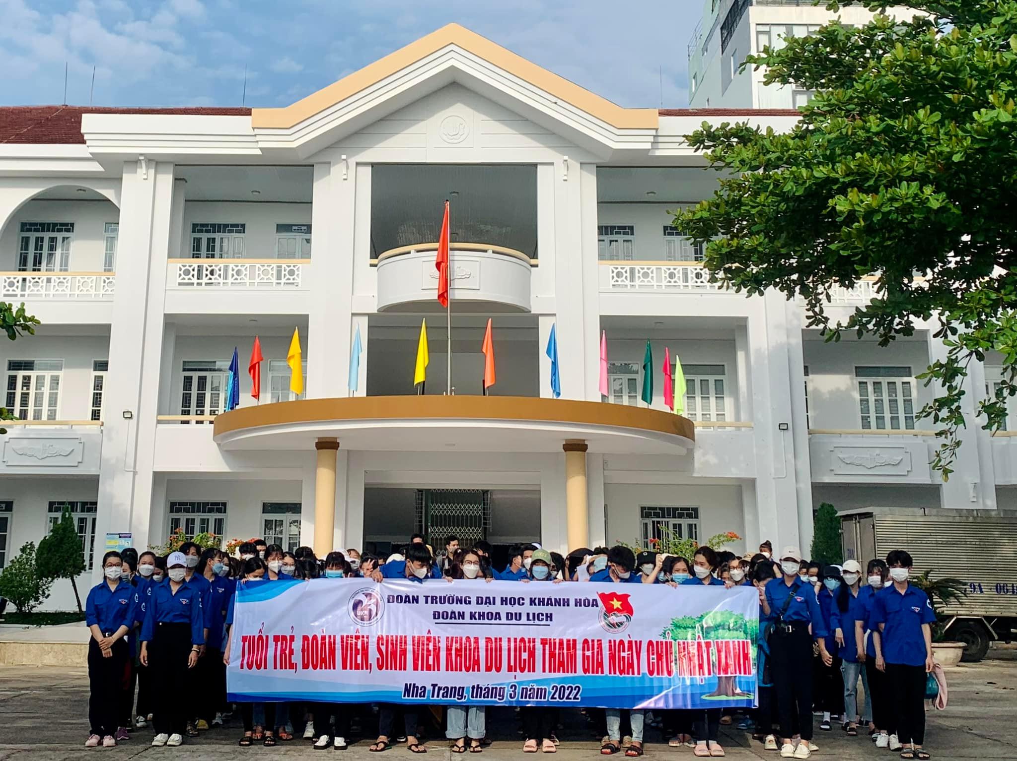 Căn cứ Kế hoạch tổ chức các hoạt động Tháng thanh niên năm 2022 do Đoàn trường Đại Học Khánh Hòa phát động, sáng ngày 20/03/2022 Đoàn Khoa du lịch tổ chức ra quân thực hiện Ngày chủ nhật xanh dọn dẹp vệ sinh khuôn viên cơ sở 2 Trường Đại học Khánh Hòa