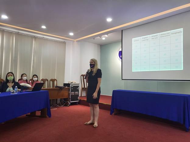 Vào lúc 14h30 ngày 24/3/2022, tại phòng 206C đã diễn ra buổi giới thiệu tư vấn du học Mỹ và chia sẻ học bổng dành cho sinh viên Khoa Ngoại ngữ Trường Đại học Khánh Hoà do Lãnh sự quán Hoa Kỳ tại thành phố Hồ Chí Minh phối hợp với Nhà trường tổ chức
