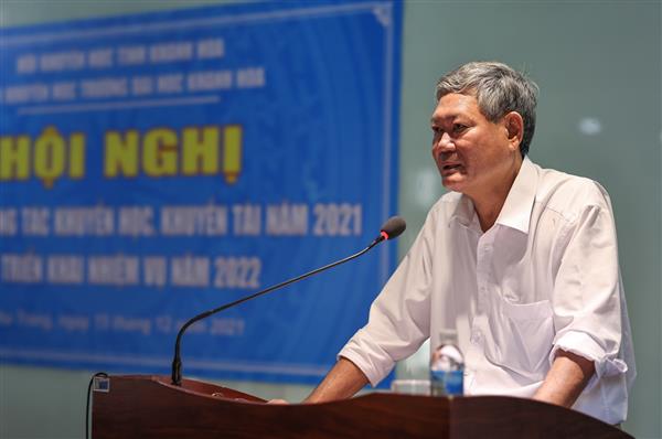 Hình 1: Ông Trần Quang Mẫn - Ủy viên Ban thường vụ Trung ương Hội Khuyến học Việt Nam, Chủ tịch Hội khuyến học tỉnh Khánh Hòa phát biểu tại hội nghị