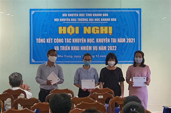 Hội khuyến học đã khen thưởng 1 giáo viên hoàn thành Tiến sĩ, 03 giáo viên hoàn thành thạc sỹ; 7 GV và 1 tập thể giáo viên có thành tích cao trong năm học 2020-2021; 1 đề tài NCKH của sinh viên đạt loại khá trở lên; 23 sinh viên nhận học bổng vượt khó học tốt, 8 em là con em của cán bộ giảng viên-CNV đạt giải trong các kì thi cấp tỉnh và quốc gia (15 giải)
