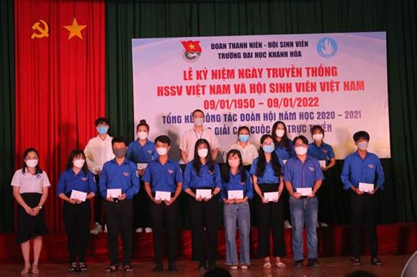 Chiều ngày 17/12/2021, tại Nhà biểu diễn, cơ sở 2, Đoàn Thanh niên - Hội sinh viên trường Đại học Khánh Hoà đã tổ chức Lễ kỷ niệm ngày truyền thống Học sinh, Sinh viên và Hội Sinh viên Việt Nam (09/01/1950 - 09/01/2022), tổng kết công tác Đoàn - Hội năm học 2020 - 2021 và trao giải các cuộc thi trực tuyến. Tham dự lễ kỷ niệm có đồng chí Nguyễn Thị Thanh Thuý - Uỷ viên Ban chấp hành tỉnh đoàn, Phó trưởng Ban thanh thiếu nhi trường học tỉnh đoàn Khánh Hoà. Về phía trường Đại học Khánh Hoà có PGS.TS. Chu Đình Lộc - Phó Bí thư Đảng uỷ, Phó hiệu trưởng, đại diện lãnh đạo các đơn vị, Ban chấp hành Đoàn thanh niên - Hội sinh viên trường và đại diện các chi đoàn, chi hội.