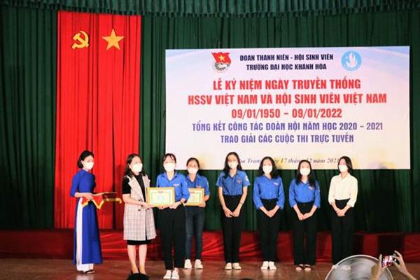 Nhân dịp này, Tỉnh đoàn, Hội sinh viên Việt Nam tỉnh Khánh Hoà đã tặng giấy khen cho 06 tập thể và 07 cá nhân có thành tích xuất sắc trong công tác Đoàn và Phong trào thanh niên sinh viên năm học 2020 - 2021. Đoàn thanh niên - Hội sinh viên trường Đại học Khánh Hoà cũng đã biểu dương, khen thưởng 2 Chi hội đạt danh hiệu Tập thể sinh viên 5 tốt cấp trường năm học 2020 - 2021, 30 cá nhân đạt danh hiệu Sinh viên 5 tốt cấp trường năm học 2020 - 2021, tặng giấy khen cho 16 tập thể, 22 cá nhân có thành tích xuất sắc trong công tác Đoàn và Phong trào thanh niên, sinh viên năm học 2020 - 2021.