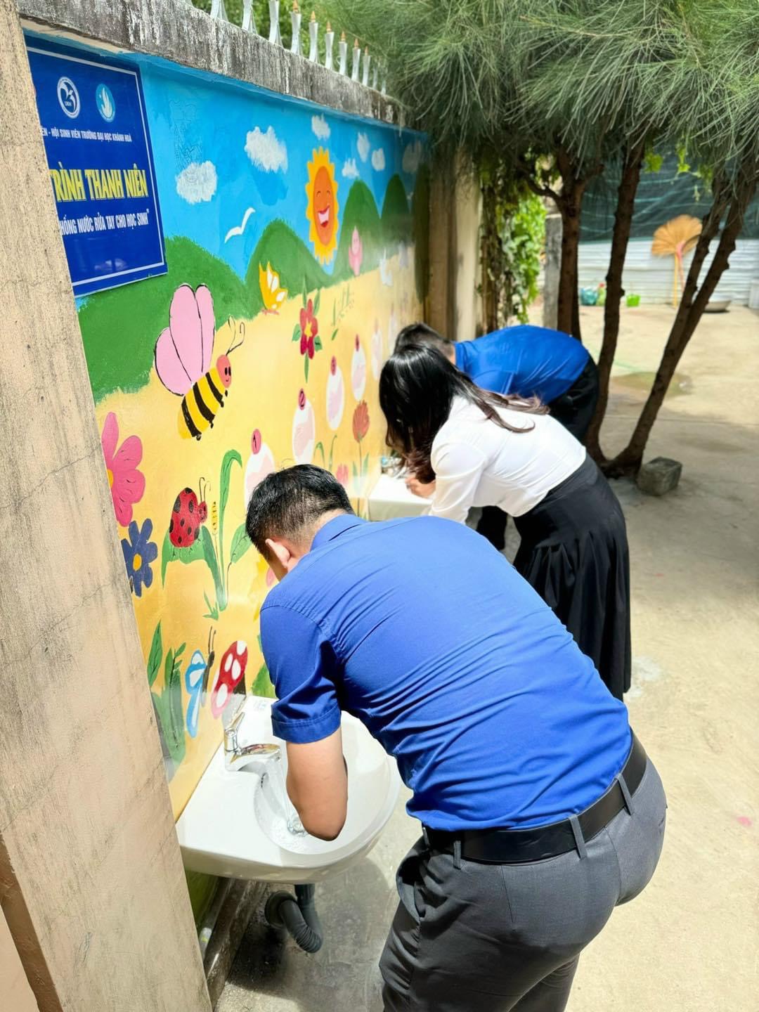 Hình 5. Lắp đặt hệ thống Lavabo nước rửa tay cho học sinh.