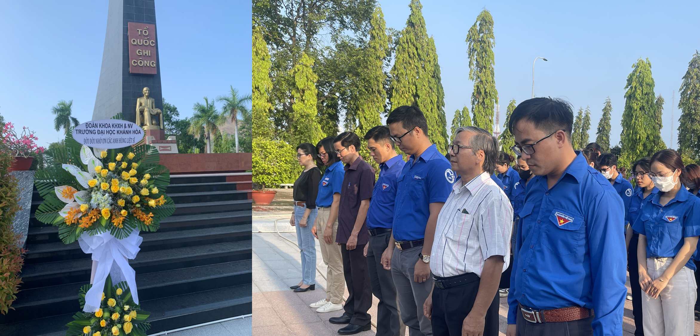 Chiều ngày 27/4/2023, Tuổi trẻ Đoàn Khoa Khoa học Xã hội và Nhân văn tổ chức Dọn vệ sinh và Lễ dâng hương tri ân các anh hùng liệt sĩ tại Nghĩa trang Hòn Dung. Đây là hoạt động thường niên của Khoa, không chỉ nối tiếp truyền thống cao đẹp, đạo lý quý báu “uống nước nhớ nguồn” của dân tộc, mà còn là trách nhiệm, tình cảm thiêng liêng, sự tri ân của tuổi trẻ Đoàn khoa, Đoàn trường Đại học Khánh Hòa đối với các thế hệ cha anh đi trước.
