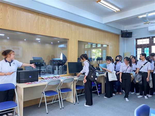 Cũng tại không gian hiện đại này, học sinh được tìm hiểu về sản phẩm “Tạp chí Sao sáng” – một trong những sản phẩm thực hành kỹ năng nghề của các anh chị SV ngành Báo chí – Truyền thông