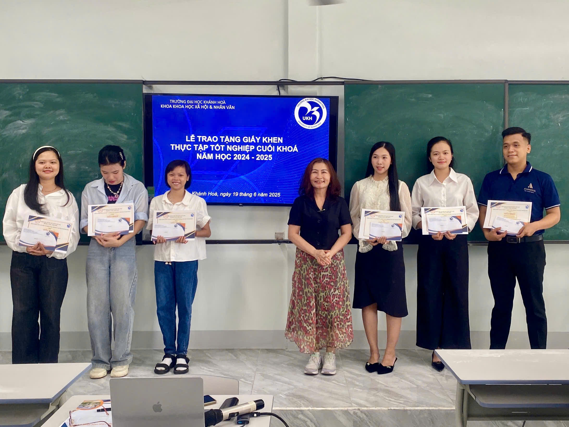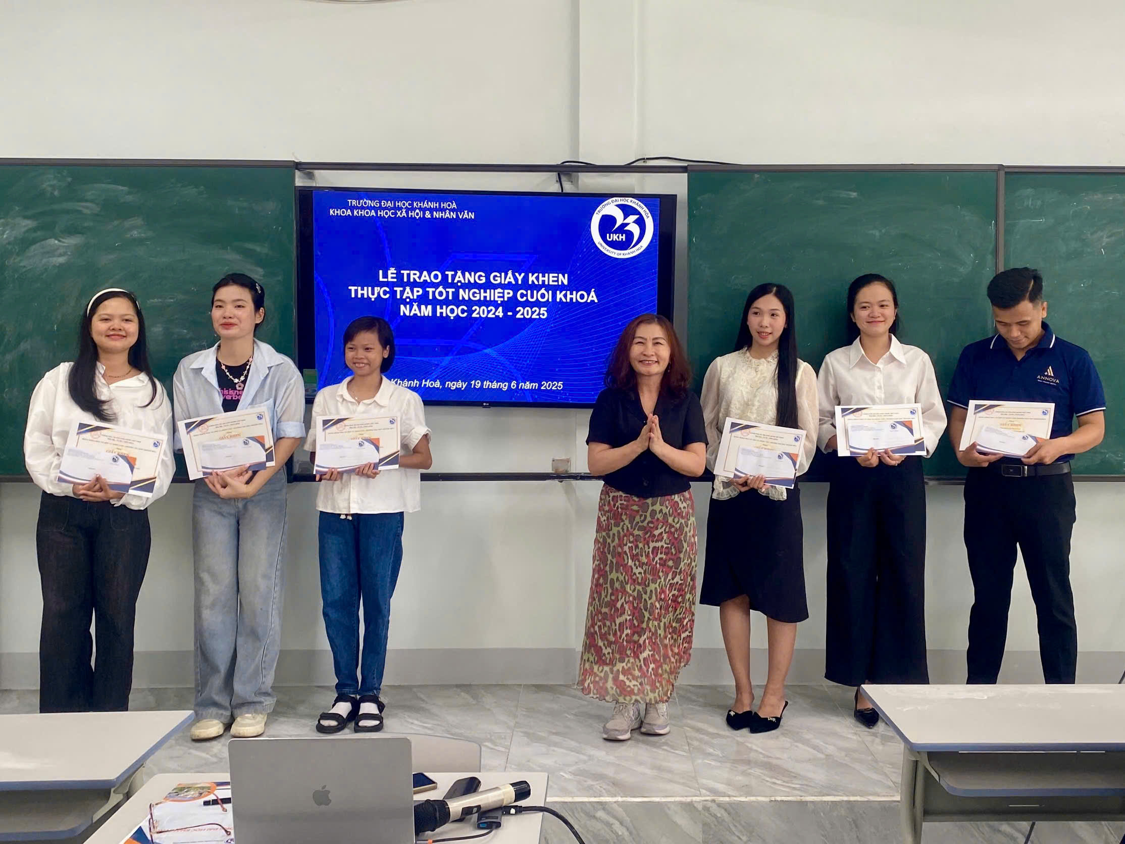 Sáng ngày 19 tháng 6 năm 2025, Khoa Khoa học Xã hội và Nhân văn đã tổ chức Lễ khen thưởng sinh viên khóa 6 tốt nghiệp loại Xuất sắc và Giỏi. Sự kiện ý nghĩa này không chỉ tôn vinh những thành quả học tập vượt trội của sinh viên sau 4 năm miệt mài rèn luyện mà còn khẳng định cam kết mạnh mẽ của Khoa về chất lượng đào tạo, góp phần cung cấp nguồn nhân lực chất lượng cao cho khu vực Duyên hải Nam Trung Bộ và Tây Nguyên.