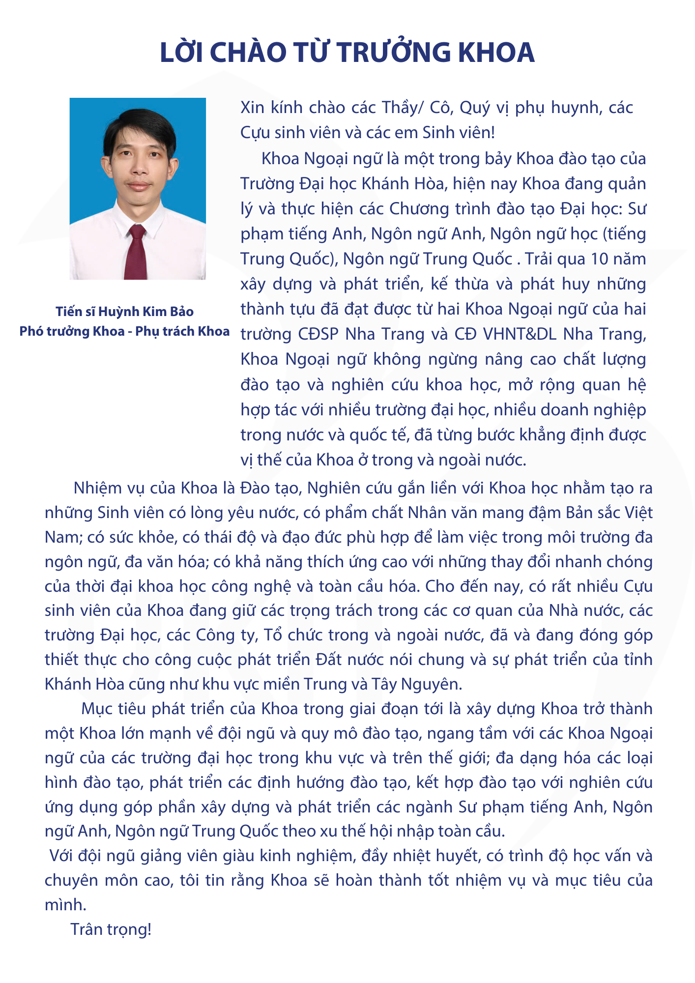 LỜI CHÀO TỪ TRƯỞNG KHOA