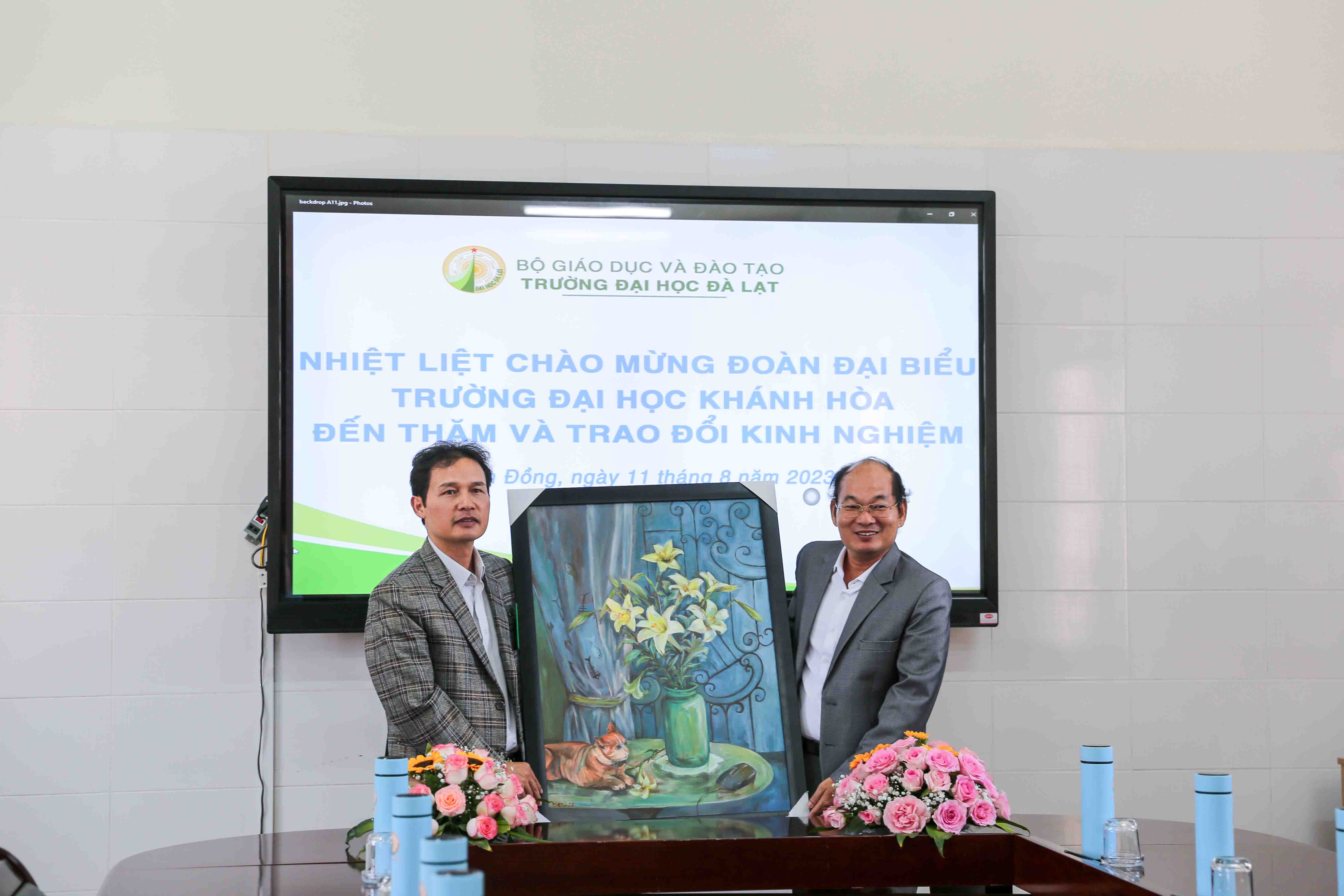 Chiều ngày 11/8/2023, tại Trường Đại học Đà Lạt, Đoàn công tác Trường Đại học Khánh Hòa do PGS.TS. Chu Đình Lộc - Phó Bí thư Đảng ủy, Phó Hiệu trưởng Nhà trường dẫn đoàn đã các buổi gặp gỡ, làm việc với Lãnh đạo Trường Đại học Đà Lạt. Đón và làm việc với Trường Đại học Đà Lạt, về phía Trường Đại học Đà Lạt có TS. Nguyễn Văn Vinh - Phó Bí thư Đảng ủy, Chủ tịch Hội đồng trường, PGS.TS. Nguyễn Tất Thắng - Phó Bí thư Đảng ủy, Phó Hiệu trưởng Nhà trường cùng lãnh đạo Phòng Quảng lý chất lượng và lãnh đạo một số khoa chủ chốt.