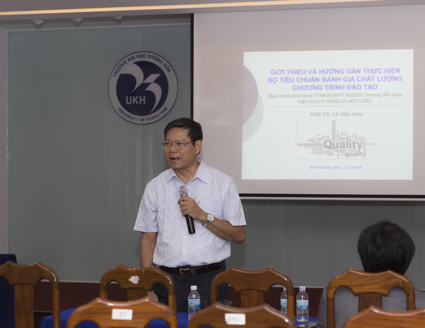 Để chuẩn bị cho công tác kiểm định chất lượng chương trình đào tạo các trình độ của giáo dục đại học, từ ngày 22/11/2019, tại Hội trường phòng 206C, trường Đại học Khánh Hòa đã tổ chức khóa tập huấn tự đánh giá chất lượng chương trình đào tạo;
