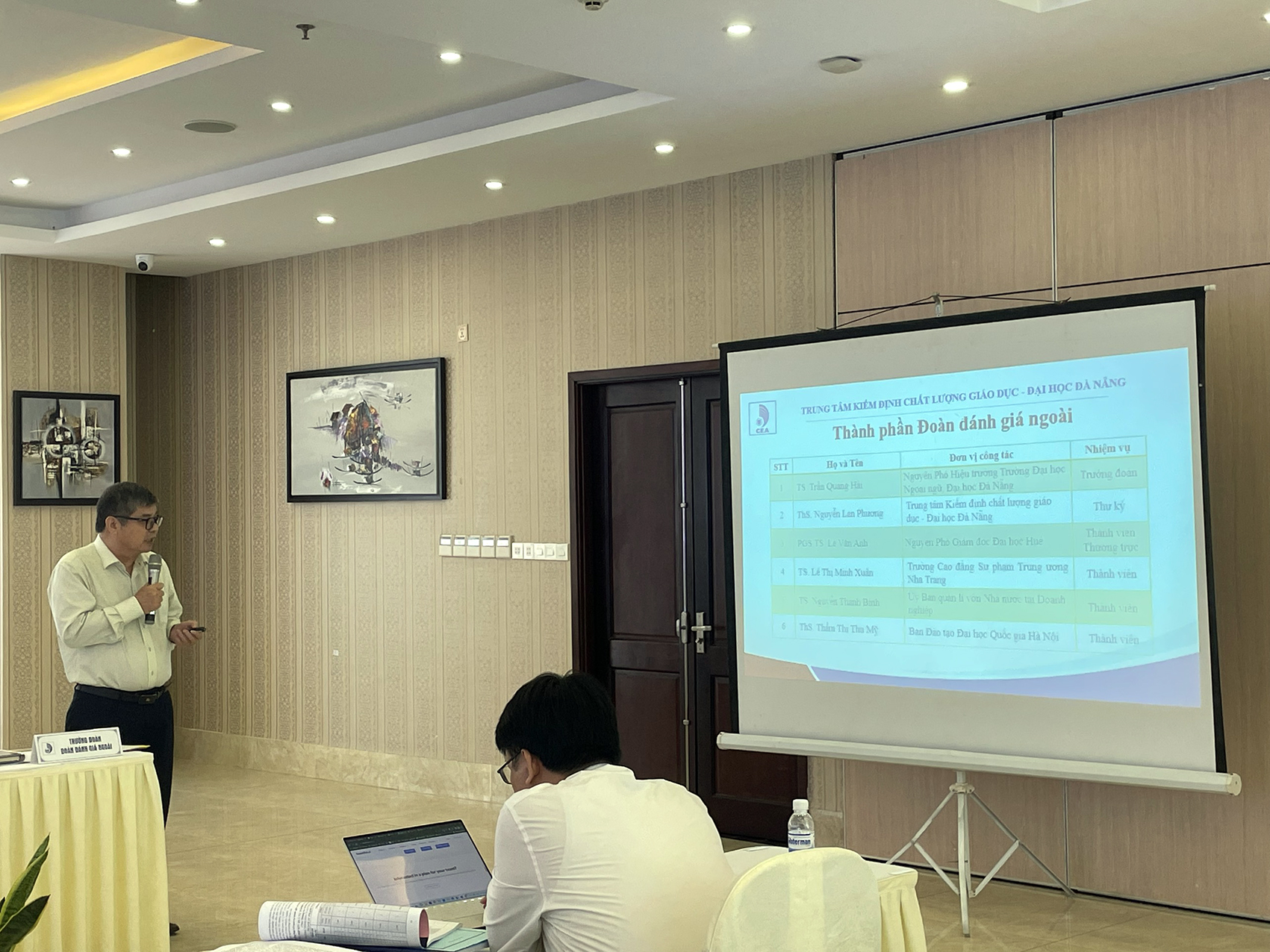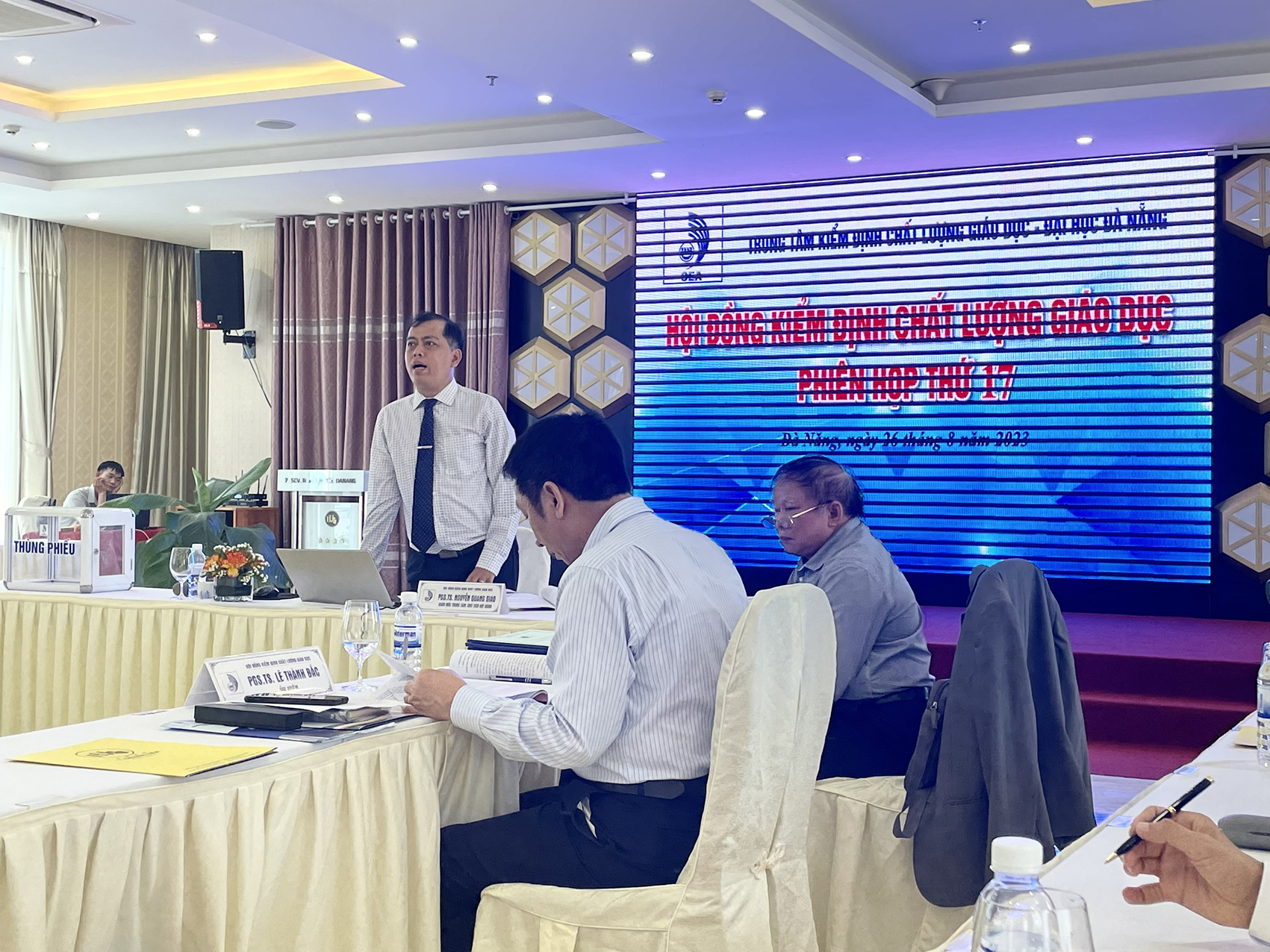 PGS. TS. Nguyễn Quang Giao - Giám đốc Trung tâm Kiểm định chất lượng giáo dục - Đại học Đà Nẵng, Chủ tịch Hội đồng kiểm định chất lượng giáo dục - chủ trì phiên thảo luận. Tại phiên thảo luận, các thành viên Hội đồng kiểm định chất lượng giáo dục tiếp tục đặt ra một số vấn đề yêu cầu Nhà trường, Khoa có ý kiến giải trình, làm rõ để giúp các thành viên Hội đồng có được các nhận định khách quan, chính xác vê mức chất lượng đạt được của các chương trình đào tạo nói trên.