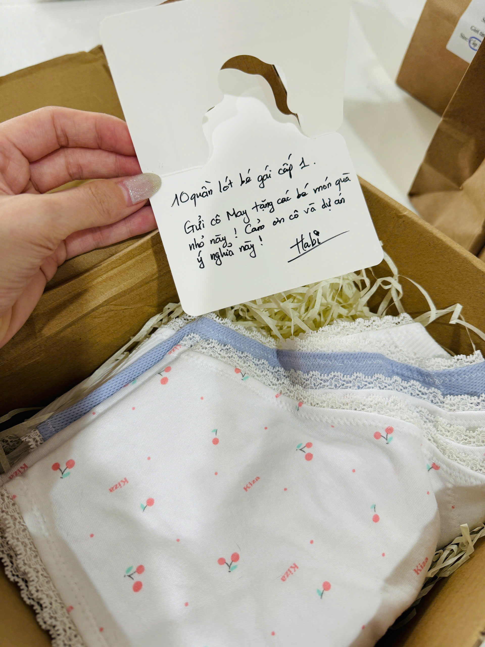 Nội y có lẽ là thứ quà rất ít người nghĩ đến khi làm thiện nguyện, nhưng đó là nhu cầu không thể thiếu, nhất là trẻ em vùng cao còn khó khăn. Hình ảnh những đứa trẻ nhận món quà được gói ghém cẩn thận với vẻ ngượng ngùng nhưng ánh mắt không giấu được niềm vui khiến cộng đồng vô cùng xúc động.