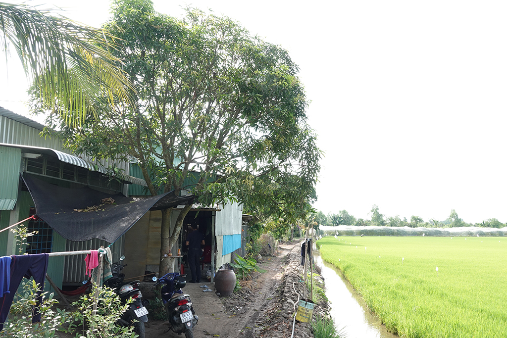 Căn nhà tiền chế nằm giữa đồng nơi gia đình bà Đạm sinh sống