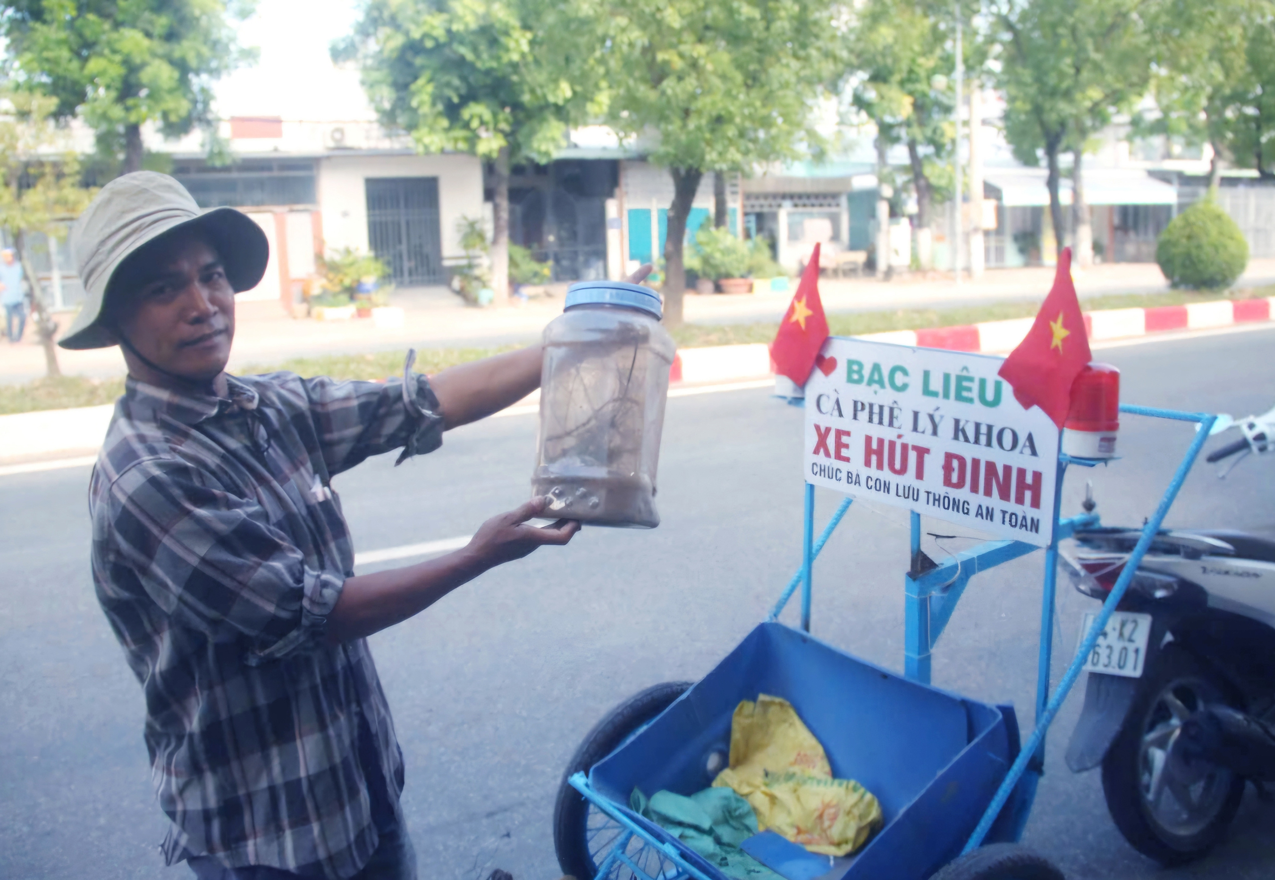 Thời gian qua, hình ảnh chiếc xe máy tự chế rong ruổi khắp nẻo đường nội ô TP.Bạc Liêu (Bạc Liêu) để hút đinh đã trở nên quen thuộc với người dân thành phố.